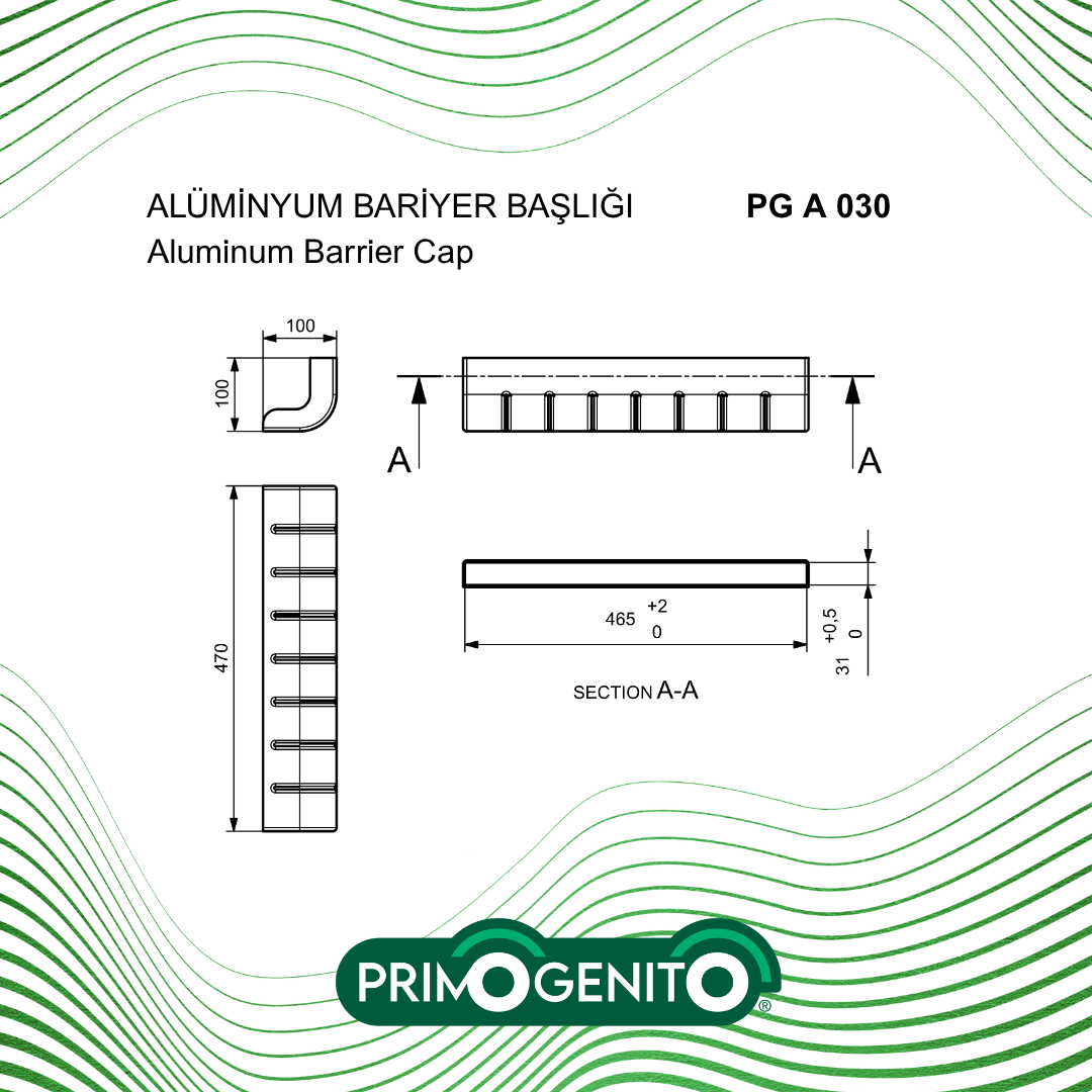 Alüminyum Bariyer Başlığı (465MM) - PG A 030